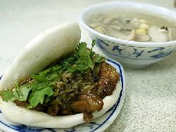 位于公馆商圈内的“蓝家割包”,传统的割包与四神汤是许多人到公馆来一定要品尝的美味。蓝家割包面皮绵密,并将温体猪肉爆香炒过,瘦肉与肥肉分开卤制,多年熬煮下来的老卤汁加在肉中渗透入味,夹上纯花生粉、酸菜、香菜,几种配料不会偏甜、偏咸、偏酸,融合的恰到好处。
