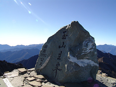 手脚并用的爬上巍巍破碎裸露的垂直角度之后,九点十分,第一次登上玉山。