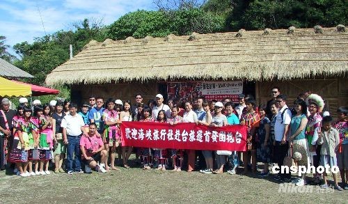 大陆居民赴台旅游北京首发团7月10日上午抵达台东市,在台东富冈里的巴沙哇力部落参加当地一年一度庆祝丰收的丰年祭。 中新社发 徐长安 摄