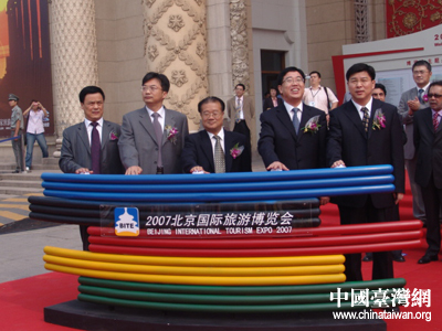 中国台湾网6月21日北京消息 小火箭从高空飞入花丛,“炸”起焰火四射……今天上午9点,“2007北京国际旅游博览会”的开幕仪式赢得了海内外嘉宾的一片赞叹之声。本次博览会以“体验北京,走近奥运”为主题,并第一次使用北京展览馆全馆。