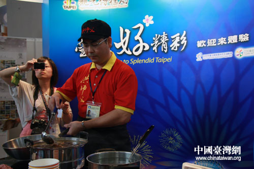 2008年北京国际旅游博览会今天开幕。借开放赴台游利好,台湾业者大规模组团涉水,抢滩大陆市场。来自台北市、高雄市、台北县、桃园县、花莲县的五位观光部门官员今日就在台湾展馆现场摆阵,轮番上台,每人争抢三分钟自由推荐时间,大秀各家顶级特色优势,场面相当火爆。