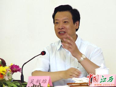 吴新雄介绍“研讨会”有关情况 中国江西网记者 杨冗晟 摄