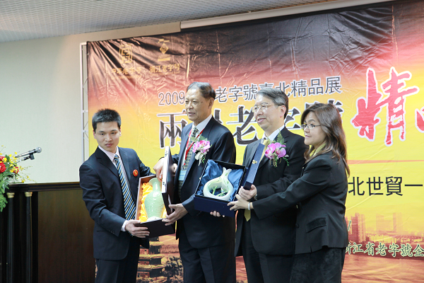 台北市进出口商业同业工会总干事黄俊国和浙江省老字号企业协会秘书长丁惠敏在会上分别致词。丁惠敏向台湾媒体介绍了浙江省老字号企业的渊源、发展历程和现状以及精品展基本概况。浙江省老字号企业协会会长、胡庆余堂掌门人冯根生和台北市进出口商业同业工会总干事黄俊国代表双方互赠了礼物。
