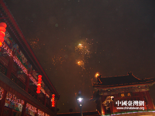 中国台湾网9月21日天津消息 一声巨响,霎时,火龙腾空,礼花齐放,海河上空,火树银花,水天之间,流光溢彩。昨晚,第三届中国?天津妈祖文化旅游节大型焰火晚会在海河之滨亲水平台隆重举行,让参加妈祖旅游节的数千名嘉宾及数万民众看得如痴如醉。