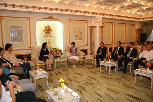 7月13日,市政协副主席曹秀荣在利顺德饭店会见了来津参观考察的台湾经贸考察团一行35人。市台办、市商务委负责同志陪同会见。