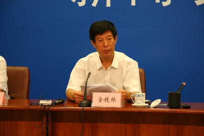 天津市旅游局副局长金铁林介绍妈祖文化旅游节期间旅游文化的接待工作