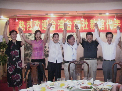 能歌善舞似乎是所有少数民族的共性,台东花莲地区被台湾民众称为"岛内最后一片净土",是少数民族的聚居区。这次访问团中也有几位少数民族同胞,成为全团活跃气氛的代表人物。王田明是万荣社教站召集人,他所属的民族排在岛内少数民族的第十二位,居住在太鲁阁旁,全族人口只有两千余人,他也是我最先认识的几位团员之一。因为该团访津主要是进行津台两地的社会教育交流,每个参访地点都是与社区群众直接沟通交流,一路走来,王召集人总会给被参访单位留下深刻的印象,不仅是因为他能歌善舞,更重要的是他的爽朗性格。在午饭时,组织全体团员带动被访社区的负责人,跳起早就排练好的少数民族舞蹈,每当热舞后,王召集人总会幽默的说,"没有舞蹈,宴会怎么能结束"。