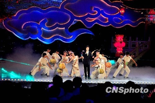 10月3日晚,一场全球华人的民族文化盛宴在江西宜春拉开序幕,20多位两岸三地明星参加此次“宜春月中华情”由央视向全球直播的中秋晚会。中新社发段长征 摄