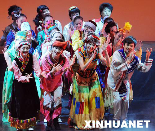9月25日至26日,来自大陆中央民族大学和西南民族大学的学生在台北举行“民族风两岸情 灾后重建关怀演出”,将少数民族缤纷的文化情韵展现在观众面前,演出所得将捐赠给台湾南部灾区民众。此次演出还邀请了80名来自台湾南部灾区的灾民到场观赏。新华社发 (吴景腾 摄)