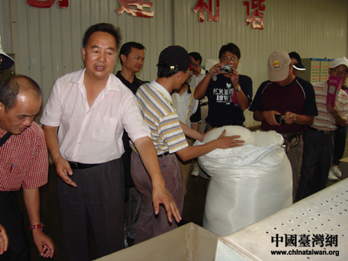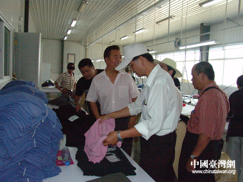 7月9日,在宁夏参加“海峡两岸记者联合采访活动”的两岸记者一行参观采访灵武羊绒工业园