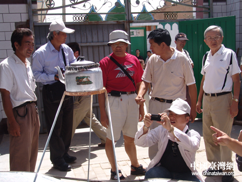 7月11日,两岸记者来到吴忠市柴园乡柴园回民新村,在回民家中参观采访。