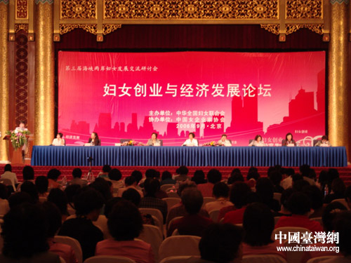 中国台湾网9月20日北京消息 第三届海峡两岸妇女发展交流研讨会昨天下午在北京饭店举行,作为本届海峡两岸妇女系列交流活动的重要内容,“女性教育与性别平等” “妇女形象与妇女读物”、“家庭教育与儿童发展”、“妇女创业与经济发展”四个主题分论坛同时登场。