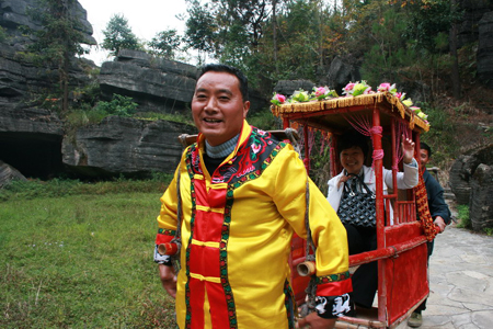 梭布垭景区内分布的自然村落,民风纯朴,民俗资源丰富,在表现民俗文化多元性的同时,又具有极为浓厚纯真的土家风情。梭布垭曾是恩施土家女儿会的举办地。一年一度的女儿会(农历7月12日),土家姑娘月半"赶场"犹抱瑟琶半遮面,假借购物送郎君,对唱山歌倾诉情怀,西兰卡普送情郎,土家汉子粗犷豪爽,丰收之夜捶大鼓,跳起欢快的摆手舞,淳朴善良的土家人蒸蓑衣饭,用合渣汤、苞谷酒、腊肉香欢迎远方的客人来做一回土家新郎、吃一吃农家饭,喝一碗苞谷老烧,实在是令人舒畅。覃建民 摄