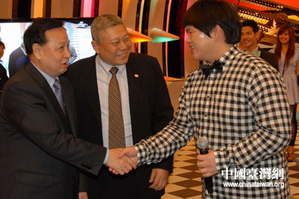 湖北省委书记罗清泉与中时旗下艺人小胖亲切握手。(中国台湾网湖北通讯员 陆胜 摄)