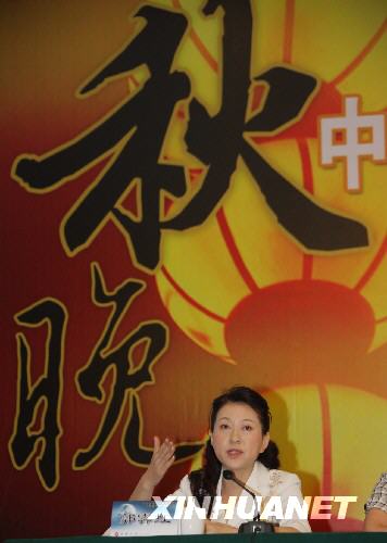 8月28日,中央电视台“荣成月·中华情”中秋晚会总导演郭霁虹在介绍晚会情况。