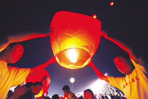 组图:央视中秋晚会北川分会场升起祈愿灯