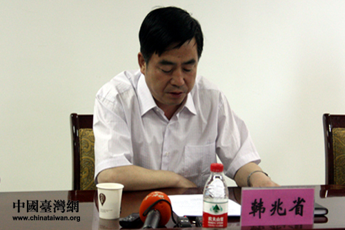 酒泉市能源局副局长韩兆省向两岸媒体记者详细介绍了酒泉市新能源发展的现状以及未来规划。(中国台湾网 郜利敏 摄)