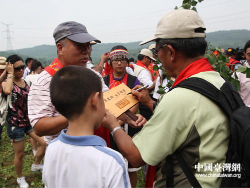 高金素梅与抗震小英雄林浩一起植下了平安树。(中国台湾网 宿静摄)