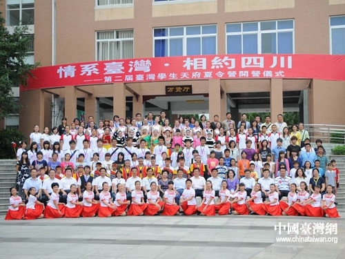 中国台湾网7月16日成都消息 应中共四川省委书记、省人大常委会主任刘奇葆邀请,7月12日,百名来自台湾云林县、苗栗县和南投县的台湾师生,在台湾民意代表许舒博带领下,来川参加“情系台湾 相约四川”第二届台湾学生天府夏令营。7月15日,在成都锦江区七中育才学校三圣分校举行了隆重的开营仪式。中共四川省委副书记、省人大常委会副主任、党组书记李崇禧,四川省人民政府副省长黄彦蓉出席开营仪式,并与参加夏令营活动的川台两地学生互动交流。