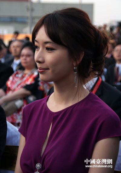 出席台湾馆点灯祈福仪式的林志玲。(中国台湾网 钟宝华 摄)