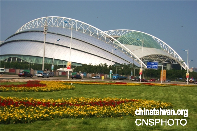 7月13日,2008奥运城市--沈阳分赛区奥林匹克中心装饰一新,更加雄伟、漂亮。据悉,辽宁省沈阳市在整个沈阳奥林匹克公园新增了219万平方米的绿化面积,种植了乔木15万株、灌木140万株,树种有30余种,共摆放花卉70万盆,总投资达3.14亿元。