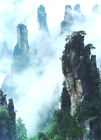 武陵源风景区位于湖南省西北部,由张家界市的张家界森林公园、慈利县的索溪峪自然保护区和桑植县的天子山自然保护区组合而成,总面积500平方公里。最近又发现杨家界新景区。武陵源风景区是80年代初“新发现”的“养在深闺人未识”的深山明珠。这里的砂岩峰林千奇百怪,似人似物,惟妙惟肖,在那静谧的幽谷里,没有任何人工雕凿,有的是石柱石峰、断崖绝壁、古树名木、云气烟雾、鸟鸣蝉噪、流泉飞瀑、珍禽异兽,人行其间,犹如到了一个神奇的世界和风味天成的艺术山水长廊。