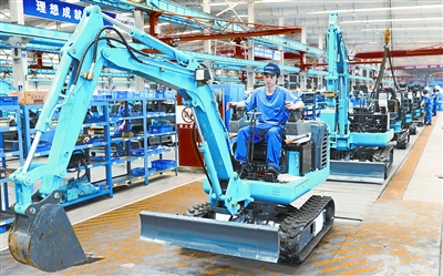 7月1日,湖南山河智能机械股份有限公司生产的系列挖掘机械设备源源下线出厂。今年以来,该公司迎来了新一轮的跨越式发展,仅1至5月份产值同比去年增长110%。本报记者 郭立亮 摄