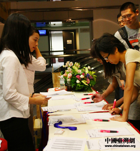 2010两岸互联网发展论坛今天上午将在台北国际会议中心隆重开幕,嘉宾签到。(中国台湾网 李桂英 摄)