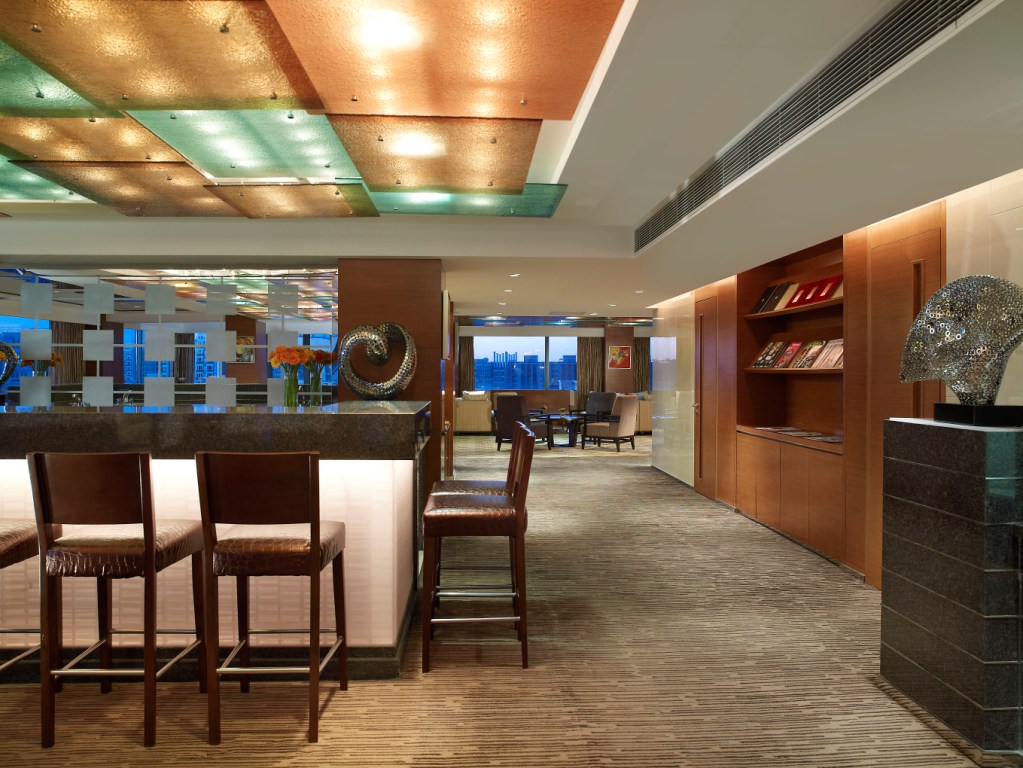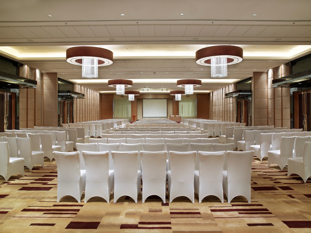 1127平方米的会议与宴会场地可同时容纳966位顾客,是举行公司会议、商务活动、大型庆典及其它活动的理想选择。可容纳720人座位的无柱式空间高挑大宴会厅和7间独立宴会厅,快速的会议通道及团队入口、先进的现代化与会设施以及专业的宴会团队,确保您各种会议及活动的成功。宽敞、时尚的弧形宴会前厅更是宾客会议前小聚与绝佳休息之地。商务中心提供全面的综合性服务,包括电脑工作室、私人会谈室以及一系列的秘书服务。