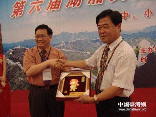 欢迎会上,台湾参访团将代表“国运昌隆、吉祥如意”的“吉祥狮”赠送给湖南省政府,曾华德团长还特别为贺同新副省长戴上了一串台湾少数民族的饰物。湖南省政府也准备了精美的工艺品赠送给海峡彼岸的朋友们。