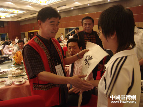 晚上,台湾中小学校长参访团与湖南省常德市桃源县中小学校同行举行交流联谊会。台湾原住民建设协会理事长、参访团团长带领原住民校长们现场演唱了这首特别改编的《我们都是一家人》,“你的家住常德市,我的家在台湾省,从前的时候是一家人……永远都是一家人……”用原住民最纯朴的歌舞来表达几天来,与大陆同行交流的心情与两岸永远是一家的心声。(文萃)