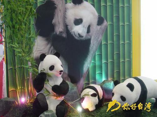 在大陆展区里,各省市代表团争相凸显各自的旅游特色,山光水色浓缩在展区当中,让人目不暇接。图为四川展区大熊猫。