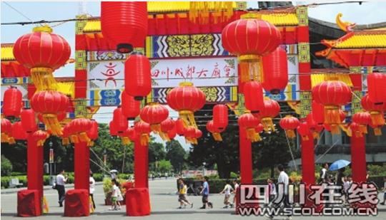 四川·成都大庙会在台北孙中山纪念馆中山广场搭建 完毕,并进行了预展。尹钢摄