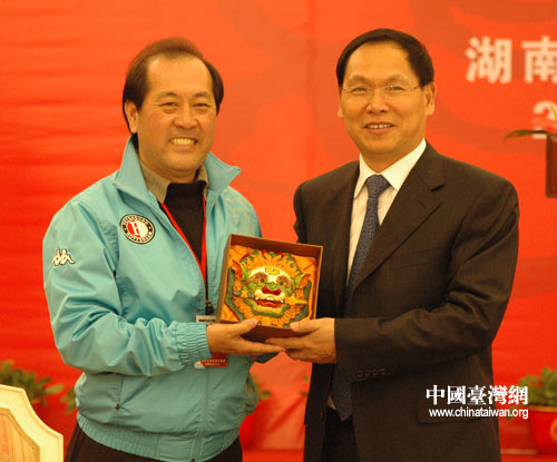 湖南省台办主任龚文密及部分湖南省政府有关部门领导、省台办领导参加了会见。会见后,双方互赠了礼物,随后湖南省人民政府设欢迎晚宴,招待远道而来的宝岛贵客。(李杰)