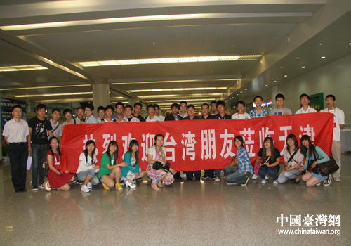 天津大学学生前往机场迎接台湾同学(天津市台办 沈斌 摄)