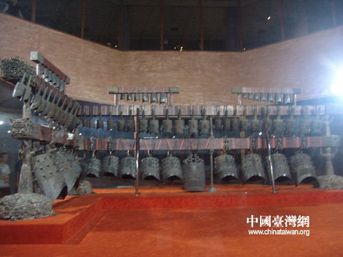 在曾侯乙墓厅里最让台湾团成员为之惊叹的要数该厅的镇厅之宝曾侯乙编钟。据导游介绍,曾侯乙编钟是目前为止在全国乐器规模最大、保存最为完好、乐器功能性最大的编钟。第一次看到如此壮观的编钟,台湾团成员们纷纷拍照留念,连叹它的庞大。