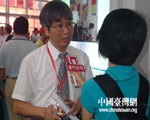 参加交易会的台湾代表接受记者采访]]>