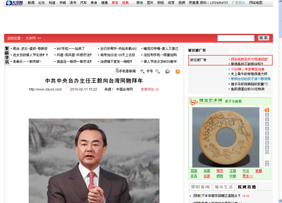 [大洋网] 中共中央台办主任王毅向台湾同胞拜年