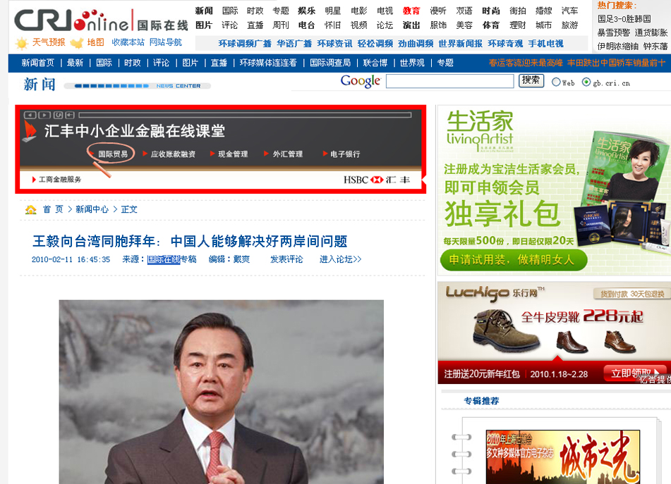 2010年2月11日,中共中央台办、国务院台办主任王毅向台湾同胞拜年。(中国台湾网 田云鹏 摄)