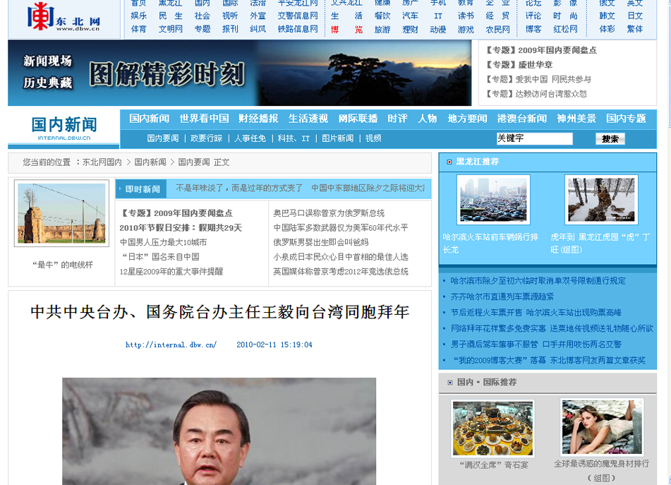 [东北网] 中共中央台办、国务院台办主任王毅向台湾同胞拜年