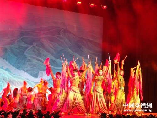 图为开营式在富有中华民族特色的大型歌舞《鼓舞东方》。