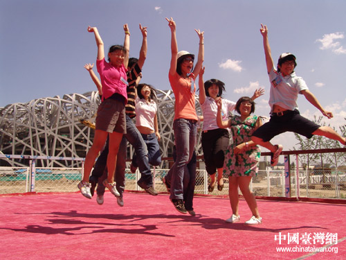 中国台湾网7月11日北京消息 作为营员们最向往的部分,台胞青年千人夏令营营员昨天来到了北京奥运场馆建设工地,近距离观看了北京奥运场馆鸟巢和水立方。