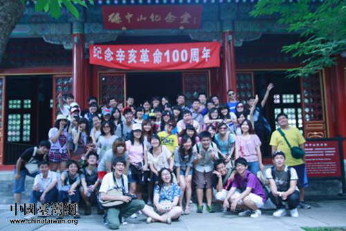 两岸青年学生“追寻历史的足迹”参访团在香山孙中山纪念堂前合影留念。
