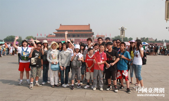 虽然正值三伏暑热,来到天安门广场的同学们却都很兴奋。看到瞻仰毛主席的队伍如此宏大,活泼的台湾女生不禁感叹:“哇,比台湾的偶像开演唱会的人还要多耶”,引得大家一阵欢笑。同学们争先恐后的拍照,并不时惊呼:“哇!我来过天安门了耶!”随行的台湾老师康春菊表示,“只有在课本、电视上才能看到的天安门真实的出现在眼前,只能用‘感动’来形容”。