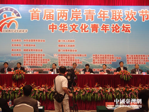 中华文化青年论坛标志首届两岸青年联欢节正式开幕,全国人大常委会副委员长许嘉璐、团中央书记处第一书记周强、福建省省长黄小晶、国务院台办副主任叶克冬等出席论坛。