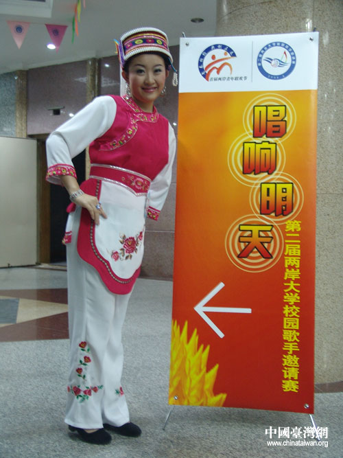 身着一身白族服饰,就读于北京大学,正在念影视编导专业的大一女生林楠就是以一曲《八百里洞庭我的家》最终获得了“唱响明天”两岸大学校园歌手邀请赛的银奖。她告诉记者,她之所以选择这样一首歌曲以及白族的服饰,就是为了向大家展示中华民族美丽的河山和风情。谈到此次参赛的感受,她觉得台湾的同龄人很亲切,大家相处得很好,彼此之间在几天的彩排中也结下了深厚的友谊。