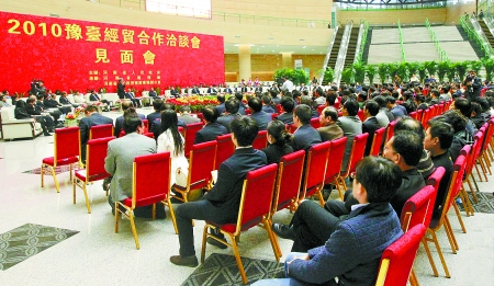 十月二十五日,二○一○豫台经贸合作洽谈会见面会在郑州国际会展中心举行。图为见面会现场。郭宇摄