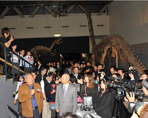 开幕式上,最吸引人眼球的是全球首次对外公开展出的化石珍品——“董氏大山铺龙”。为其命名的“中国龙王”董枝明教授在现场详细讲解了该恐龙化石的发现过程和价值。“大山铺龙的由来?”“自贡恐龙的特点是什么?”“恐龙的大灭绝如何解释?”等等问题,成为观众关注的热点。