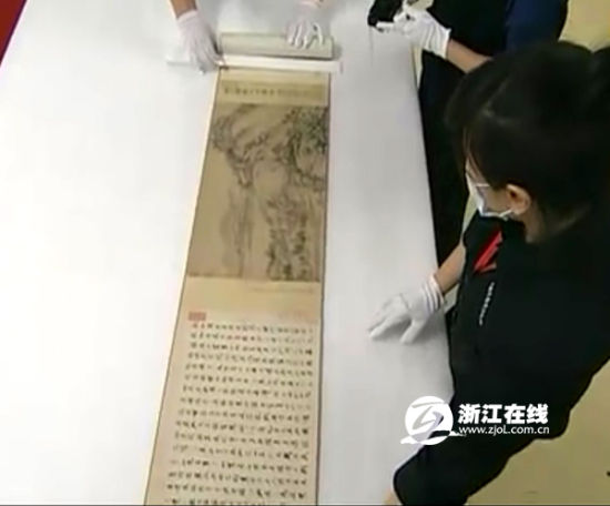 中国文物交流中心主任王军与台北故宫博物院副院长冯明珠等通过实时电视讯号,共同见证12件书画“点交”过程。来自台北故宫的4名专业人员与中国文物交流中心的专业人员对12件画作逐一进行了细致的点交查验。
