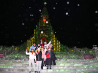 1月30日下午,台湾青年学生参观了哈尔滨的著名景观——冰雪大世界。冰雪大世界是哈尔滨国际冰雪节的龙头品牌,于1999年底在美丽的松花江畔诞生,每年举行,汇天下冰雪艺术之精华、融世界冰雪游乐于一园,集艺术性、观赏性、参与性于一体,场面恢宏壮阔,造型大气磅礴,景致优美绝伦,被誉为恢宏壮阔的“冰雪史诗画卷”。在游览中,无论是冰雕还是雪雕,都让这些来自台湾以前几乎没见过北国风光的的营员们叹为观止。